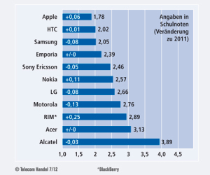 Die Telecom-Handel-Leser bewerteten die Handy-Hersteller in 15 Einzelkategorien. Klicken Sie sich durch alle Ergebnisse in unserer Bildergalerie.
