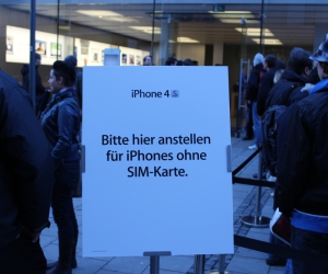 Apple musste sich bei der Präsentation zum Teil harsche Kritik für das iPhone 4S gefallen lassen. Dass sich das Apple-Smartphone trotzdem wie geschnitten Brot verkauft, zeigt ein Besuch des Apple Store in der Münchner Innenstadt, wo es das Gerät seit heute zu kaufen gibt. Eine Bildergalerie ohne Worte.