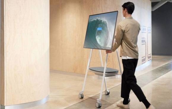 Wahlweise kommt das neue Surface Hub 2S auch mit robustem Rollwagen und einem zusätzlichen Akku daher.