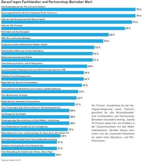 Ähnlich wie im Vorjahr wird auch Vodafone beurteilt. 5,8 Punkte geben die Leserwahl-Teilnehmer aus dem Fachhandel durchschnittlich, 6,1 Punkte sind es bei den Vodafone-Partneragenturen – im Vorjahr erzielten die Düsseldorfer insgesamt 5,9 Punkte. Angesichts der Diskussionen um das neue Partneragentur-Programm, das die Airtime mancher Partner beschneidet, scheint Vodafone hier noch mit einem blauen Auge davongekommen zu sein. Gewinnen kann Vodafone wie bereits in den Vorjahren in den Disziplinen „Höhe der Abschlussprovision bei Neuverträgen“ sowie „Höhe der VVL-Provision“ – wobei insbesondere die Wertung der Partner aus dem Fachhandel für den jeweiligen Einzelsieg verantwortlich ist. Ebenso beim Thema „Reklamationsbearbeitung / Kulanz“ liegt Vodafone wieder ganz vorne – im Vorjahr teilten sich die „Roten“ den ersten Platz in dieser Kategorie mit den „Magentafarbenen“ aus Bonn. Erstmals den Rang eins gibt es hingegen bei der Möglichkeit für individuelle Preisnachlässe, während es hierfür bei den Schulungen und den Incentives nicht mehr gereicht hat.