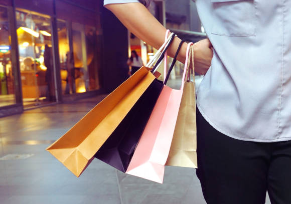 Einkaufstaschen in einer Fußgängerzone: Die Verbraucherstimmung hellt sich leicht auf, bleibt insgesamt jedoch verhalten