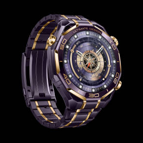 Unter dem Namen Huawei Watch Ultimate Design Royal Gold Edition bringt der Hersteller eine Smartwatch im klassischen Design, die mit einem Preis von 3.299 Euro bisher bekannte Dimensionen in diesem Segment sprengt. Dafür gibt es hochwertige Materialien: Die Lünette besteht aus einer branchenweit erstmals eingesetzten Verbundkeramik aus seltenen Erden in Purpur, die bei 1.400 °C erhitzt wird, um ihre einzigartige, lilafarbene Farbe zu erzielen. Insgesamt zehn Elemente aus 18‑Karat-Gold werden von Hand eingesetzt, davon sechs im Rahmen der Lünette. Das Gehäuse besteht aus einer armorphen Legierung auf Zirkoniumbasis. In Kombination mit präziser Fräsung und mehrfachen Polierprozessen soll dies für außergewöhnliche Haltbarkeit, Korrosionsbeständigkeit und eine besonders hochwertige Haptik sorgen. Das lilafarbene Armband mit Goldakzenten wird aus einer TC4-Luftfahrt-Titanlegierung gefertigt und mit einer ultraharten Ionisierungsschicht beschichtet.
