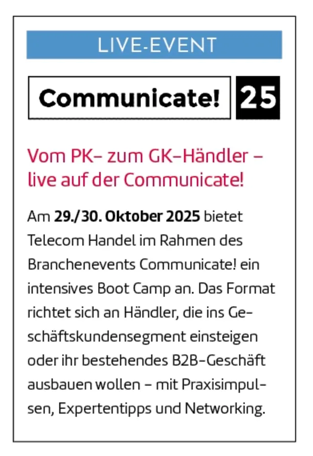 Die Rahmenbedingungen im Telekommunikationsmarkt verändern sich rasant. Frequenz und Margen im klassischen Privatkundengeschäft sinken, viele PoS-Modelle verlieren an Relevanz. Für zahlreiche Händler bedeutet das: neue Wege suchen oder langfristig Marktanteile verlieren. Ein möglicher Ausweg kann der Einstieg in die Geschäftskundenvermarktung sein. Doch dieser Schritt ist anspruchsvoll und gelingt nur denjenigen Händlern, die bereit sind, ihr Geschäftsmodell neu zu denken.