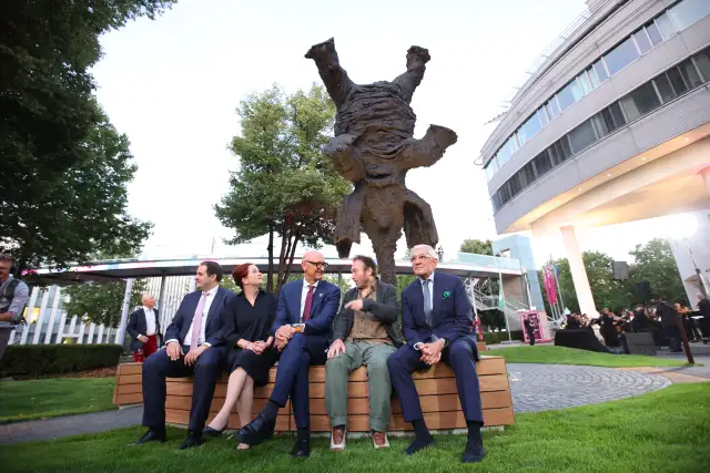 Symbolträchtig war die Enthüllung der Skulptur „Grand elefant dret“ vor der Konzernzentrale: Ein acht Meter hoher Elefant aus Bronze, der auf dem Rüssel steht – geschaffen vom spanischen Künstler Miquel Barceló. Die Skulptur stehe für Stabilität und Stärke, aber auch für Leichtigkeit und unerwartete Wendungen. „Wir wollen den Elefanten zum Tanzen bringen und als Unternehmen immer wieder das Unmögliche möglich machen“, sagte Höttges.