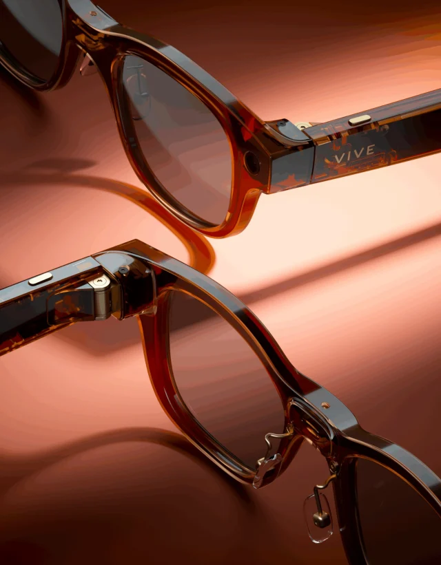 Quelle: HTCEine zentrale Funktion ist die Übersetzung in 13 Sprachen. Inhalte, die mit der Kamera aufgenommen werden, lassen sich in Echtzeit ins Gesprochene übertragen, und das ohne separate App oder Smartphone-Verbindung. Die Brille ist mit Zeiss-Sonnenbrillengläsern ausgestattet, der Akku ermöglicht laut Hersteller bis zu 4,5 Stunden Musikwiedergabe. Geladen wird magnetisch; zehn Minuten Ladezeit sollen für rund die Hälfte der Akkukapazität reichen.