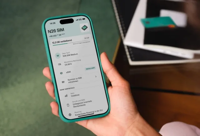 N26 SIM ist ab sofort für die deutschen Kunden der Digitalbank verfügbar, später soll das Angebot auch für andere europäische Länder kommen. Es gibt drei monatlich kündbare Tarife, die unbegrenzte nationale Telefonate und SMS sowie EU- und EWR-Roaming umfassen: 10 GB Datenvolumen für 13,99 Euro im Monat, 30 GB für 19,99 Euro und 100 GB für 34,99 Euro. Sie können über die N26-App abgeschlossen werden und sind ausschließlich per eSIM nutzbar. Die Rufnummer kann portiert oder neu vergeben werden.